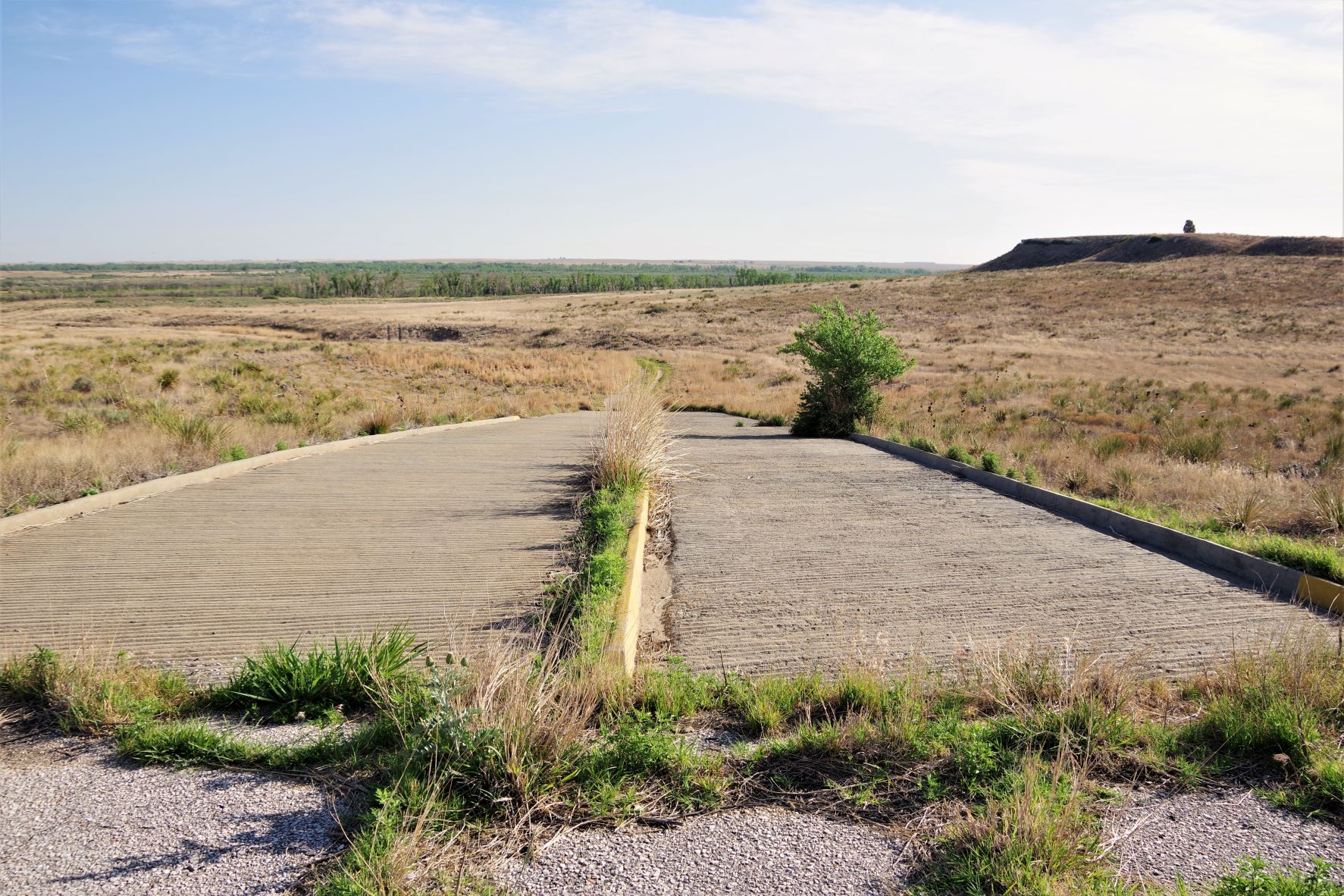 With no prospects for solving this dilemma, the Optima project crumbled, and in 1995 the Corps of Engineers ceased all operations. With no lake and no amenities, few people came to visit. The County took over for a year, then local volunteers tried to keep it going to no avail. Then in 2010, the Corps officially threw in the towel and “for safety reasons” removed all the restrooms, bathhouses, picnic tables, fire rings and the like that had been built, down to the ground. Nothing remains but concrete pads and disintegrating asphalt.